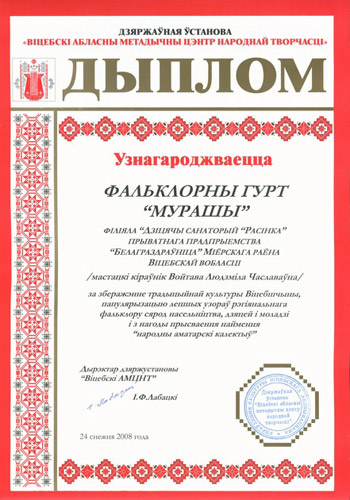 В декабре 2008 года самодеятельный коллектив «Мураши» филиала «Детский санаторий „Росинка“» получил звание народного коллектива.
